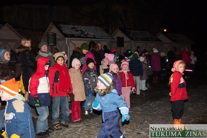 Trešdien, 11. decembrī, vakarā, kad pilsētu jau ieskāva tumsa, Kandavas Promenādē iemirdzējās svētku egle. Sniega māte skopojās, bet viņas kļūdu labot centās daži ņipri sniegavīri, aicinot visus klāesošos uz jautru dziesmu šovu, ko kuplināja vairāki novadnieki, sknīgu balsu īpašnieki. Domes priekšsēdētāja Normunda Štoferta aicināta, svētku eglei izgaismoties palīdzēja tās līdzšinējā saimniece Skaidrīte Šneidere.