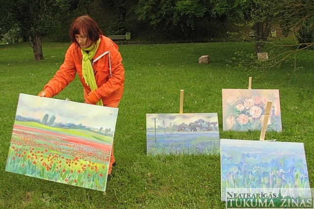 Šodien, 19. jūnijā Kandavā, Bruņinieku pilskalna pakājē – skvērā pie strūklakas bija aplūkojami nedēļas laikā mākslinieku vasaras plenērā tapušie darbi – krāšņi un daudzveidīgi. Pavisam plenērā šogad piedalījās 28 radoši mākslinieki, tostarp arī viesi no Dānijas.