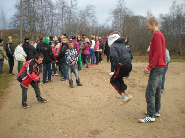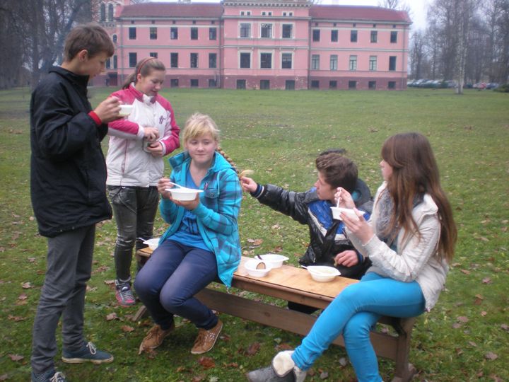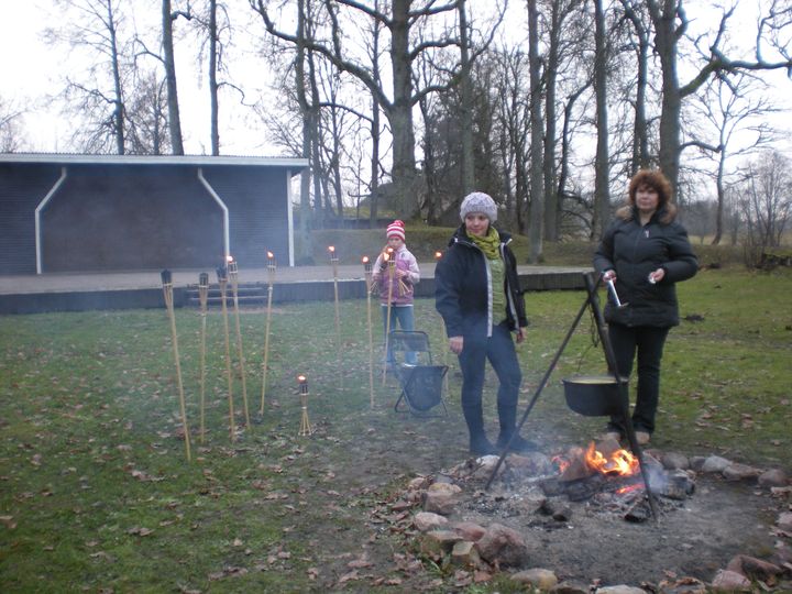 Atgriezušies skolas parkā, drosmīgākie izmēģināta precizitāti šaušanā mērķī, bet noslēgumā visi ķērās pie lielā zupas katla tukšošanas.