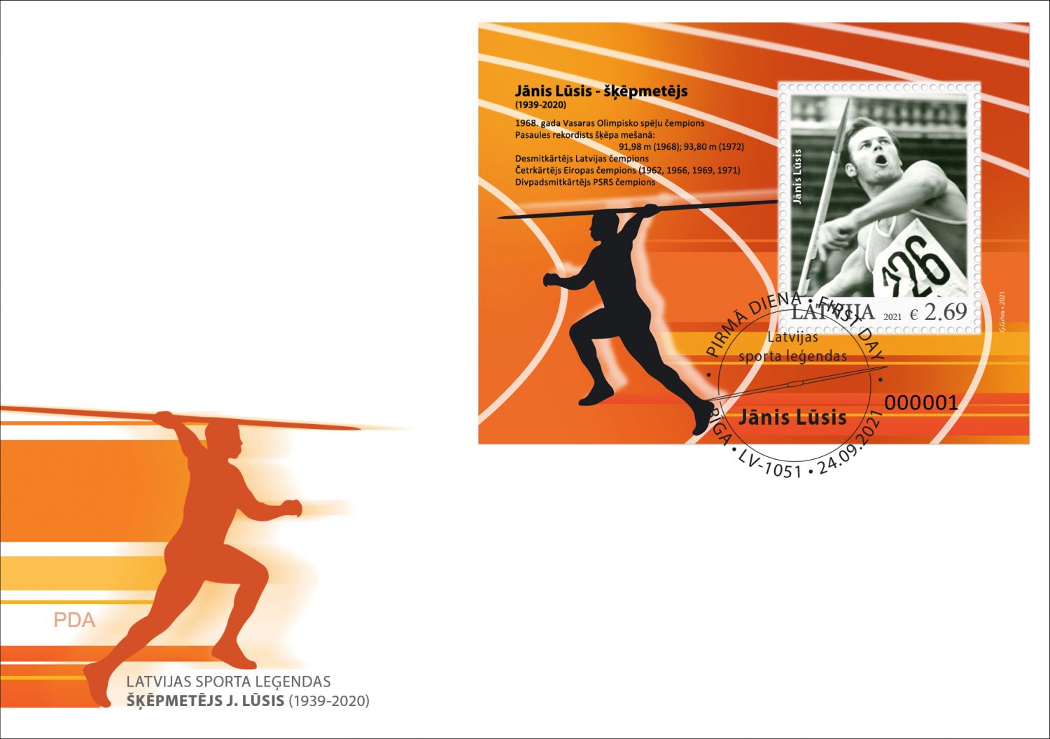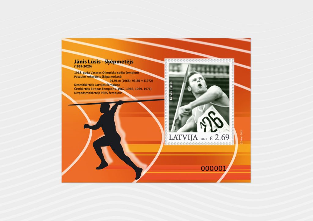 Jauno pastmarku bloku un aploksni Latvijas sporta leģendas – Jānis Lūsis iespējams apskatīt te.