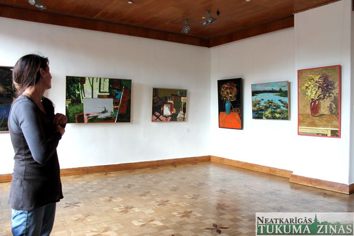 Kad ieradāmies «Vējspārnā» māksliniece pie gleznām izvietoja to nosaukumus. Vaicājām, vai tie zināmi no galvas. “Jā, šīm gleznām zinu. Diemžēl mākslinieks pats gan īsti negribēja izstādes atklāšanu rīkot un uz to ierasties, tāpēc tā nu ir – šodien izkaru un tad ikviens interesents jau var nākt tās un skatīt.