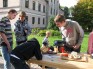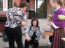 Visbeidzot – pabijām arī Zemītē, kur agrā Miķeļdienas pēcpusdienā jau teju visu no piedāvātā tirdziņa apmeklētāji bija notiesājuši – gan vafeles ar medu, gan kēksus ar ievārījumu un citu labumus. Tomēr, lai tirgošanās nebūtu tik vienmuļa, arī te bija iespēja noskatīties īpaši šiem svētkiem veltīto teatrālo uzvedumu, kuru uz skolas kāpnēm izrādīja 4. klase. Par piedalīšanos rotaļās ar tautisku piesitienu katras varēja dabūt saldu našķi.