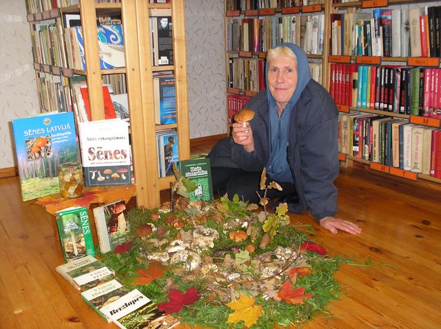 Savukārt Ritai, uzlūkojot brīnišķīgo, meža veltēm bagāto jaunieguvumu, tūdaļ radās ideja – iekārtot uzskatāmi izzinošu izstādi par sēnēm un sēņošanu. Galu galā izstādē netrūka nedz izsmeļošas informācijas, nedz apskatei izvietotu sēņu un – kur nu vēl procesa gala iznākums – burciņa marinētu sēnīšu, kas sākotnēji papildināja izstādi, bet pēc tam tika likta galdā pasākuma dalībnieču kopējai degustācijai. Rita izmantoja izdevību kopā ar izstādes elementiem fotomirklī notvert arī pašu sēņu lasītāju, jo viņa uz pasākumu vien sagatavotos gardumus atgādāja, bet pati jau enerģijas pārpilna steidzās vākt rudens aveņu ražu.
