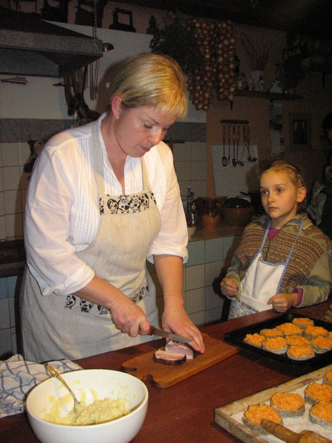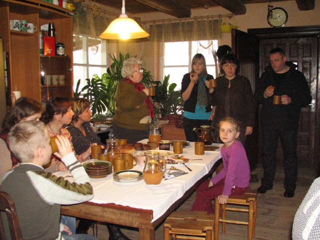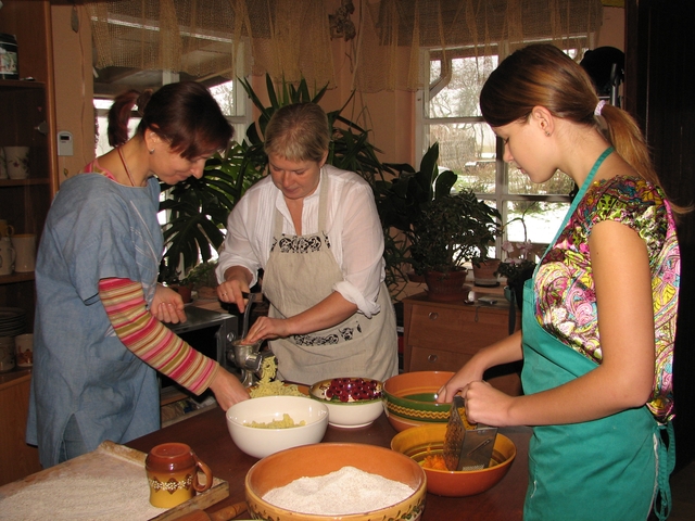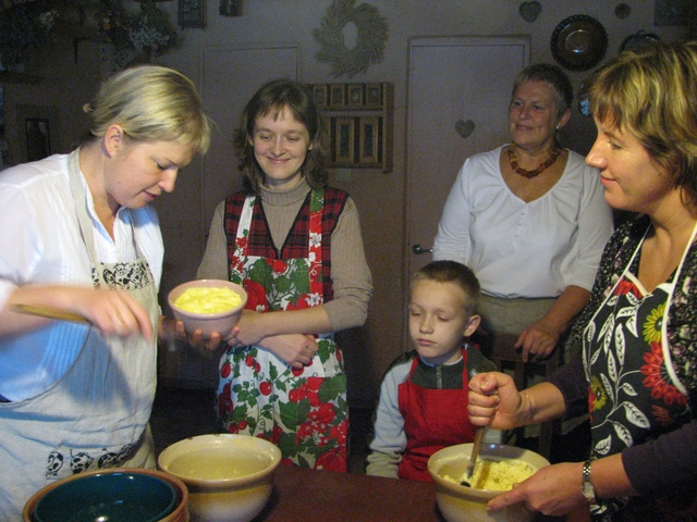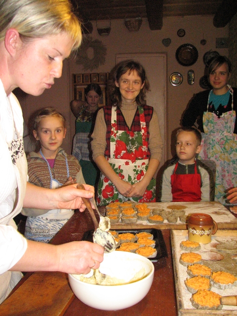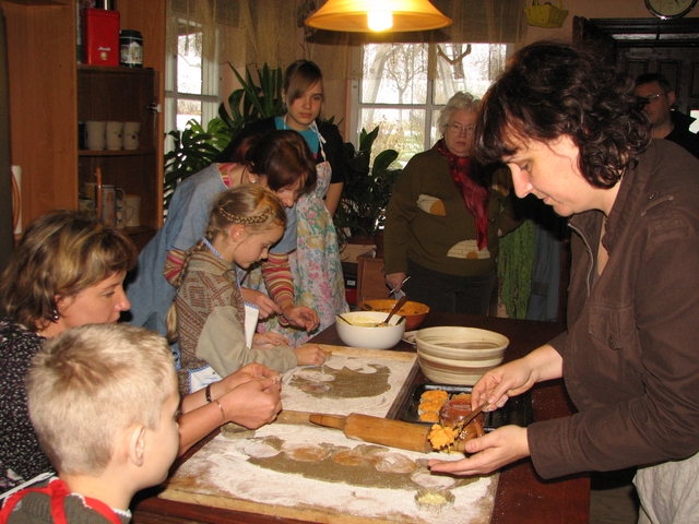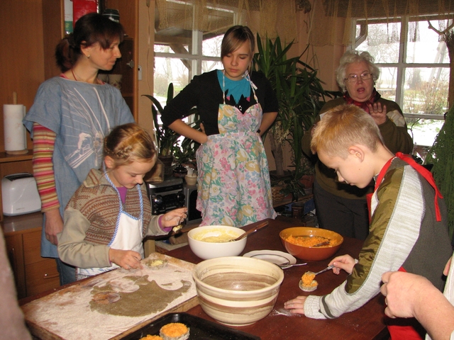 Īpaši skalndraušu pamatnes jeb žodziņa darināšana un piepildīšana patika un arī padevās bērniem. Turklāt saimniece bez sklandraušiem un teju kā sakultā sviesta galdā cēla arī pašas ceptu maizi, vakar žāvētu lauku speķi un aromātisku piparmētru tēju. Tā kā sklandraušu recepte ir samērā vienkārši iegaumējama, bet raušu gatavošanas process ir garš, atlika laika arī sarunām par to kā dzīves ceļi jauno ģimeni atveduši «Indānos», kā šajā lauku sētā pagājušajā gadā tika filmēti «Mazie laupītāji», bet šovasar – topošās Latvijas princeses.