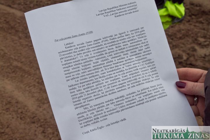 Trešdien, 21. decembrī, vairāk nekā 50 Zantes iedzīvotāju pulcējās pie Smiltiņkalna, lai izteiktu savu viedokli par ceļa Zemīte-Zante stāvokli. Tas pēdējā mēneša laikā izveidojies par neizbraucamas šļuras upi.
