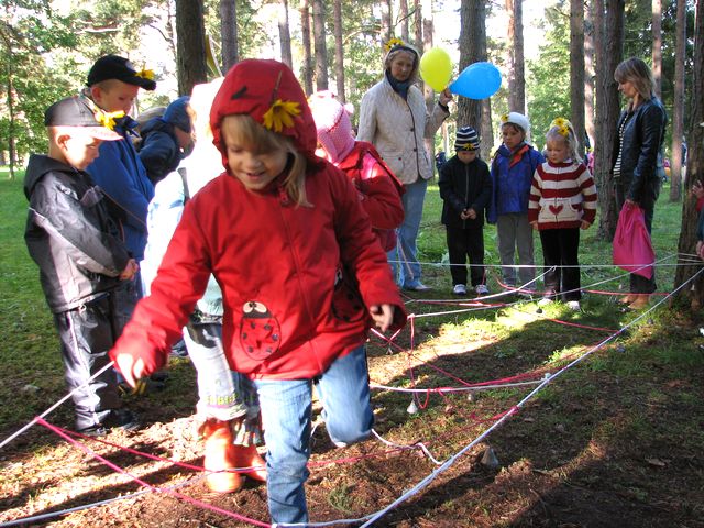 Tālāk bērnus gaidīja pārsteigums – krāsaini baloni ar interesantiem uzdevumiem, kur jāpierāda veiklība, drosme, precizitāte, arī matemātiskas un ar dabu saistītas zināšanas. Katrai no piecām grupām bija iespēja nopelnīt piecus krāsainus balonus. Bērniem bija jāatpazīst koku lapas, cieši vienam pie otra stāvot, jānomēra divu kopā saaugušu priežu apkārtmērs, jāpārvietojas pa labirintu, jāmet mērķī čiekuri un jāpārvietojas pa virvēm. Kad sporta skolotāja Inta Štoferte interesējās, kurš no pārbaudījumiem pasākuma dalībniekiem paticis vislabāk, bērni stāstīja, ka tā bijusi pārvietošanās pa virvi. Sarežģītākais pārbaudījums – labirints. Zīļuks atzina, ka kolektīva vecākie bērni ir veikli, droši un zinoši. Protams, viņi sastapa arī savu uzticamo draugu Buratīno, kurš, pamanījis stadionā bērnus, devās šurp. Veselības dienas noslēgumā bija kopīgas rotaļas un mielasts. Pārējiem bērniem Veselības dienas aktivitātes paredzētas nākamajā nedēļā.