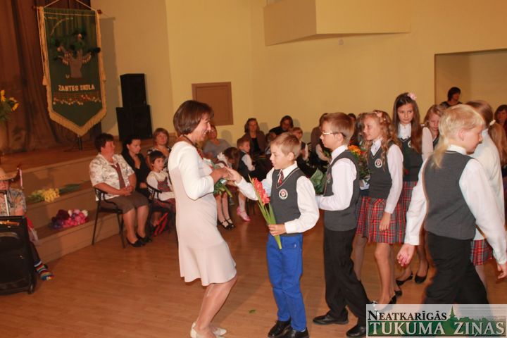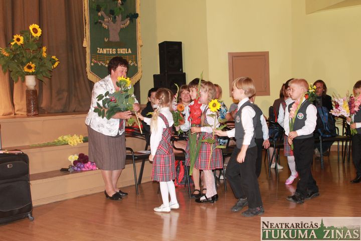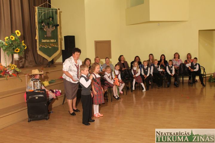 Par to, kā jaunās formas izskatās, varējām pārliecināties 1. septembra pasākumā Zantes kultūras namā – divarpus stundu ilgā uzvedumā, ko ievadīja pirmklasnieku ievešana zālē vecāku un 1. klases pasniedzējas Daigas Poškus pavadībā.