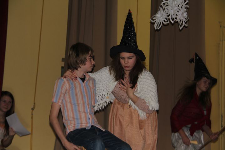 Un tā, čakli darbojoties, pienāca Ziemassvētku pasākuma diena, 19. decembris.Rīts iesākās ar klašu eglēm, bet pēcpusdienā visi devāmies uz kultūras namu, kur mūs vienmēr sagaida un uzņem nama saimniece Guna Ošeniece. Šogad pasākums notika pie saklātiem svētku galdiņiem kopā ar vecākiem. Kamēr visu skati bija vērsti uz skaisti saposto egli, zālē nodzisa gaisma un sākās Friča Bārdas lugas «Spārnotās meitenes» uzvedums. To iestudējusi skolas teātra studija «Denči» sk. Evas Bērziņas virsvadībā. Teksti mijās ar dziesmām un jestriem tēlu dančiem. Kad izskanēja pēdējā dziesma, direktore Ausma Pileniece teica svētku uzrunu un izvērtēja padarīto.