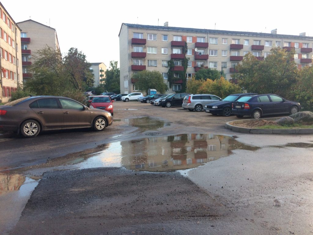 21 gadsimtā pilsētas māju pagalmā grants ar lielām bedrēm un metru dziļām peļķēm- neticami!