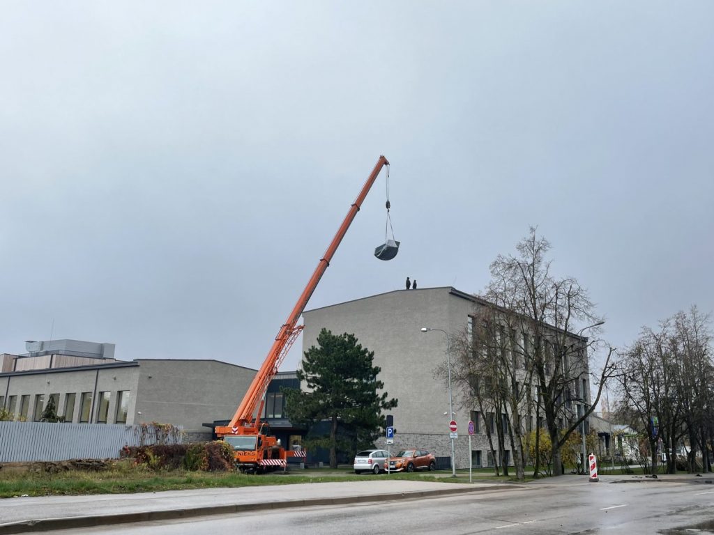 2. novembrī pamanījām, kā uz Tukuma 2. vidusskolas jumta tiek uzliktas palielas metāla konstrukcijas.
