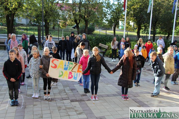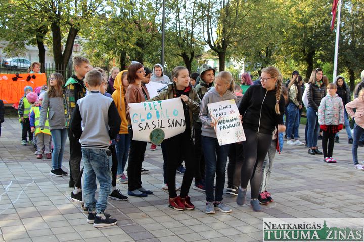 Ar šādu devīzi šorīt Tukuma 3. pamatskolas skolēni pulcējās skolas pagalmā, lai vispirms jau atgādinātu paši sev un arī sabiedrībai par to, kāda nozīme ir ikdienas ierasto paradumu maiņai, lai vārdi – saudzēt dabu un saglabāt tīru vidi, nebūtu tikai vārdi, bet atspoguļotos ikviena cilvēka rīcībā. Turklāt – ne tikai akciju laikā, bet arī ikdienā.