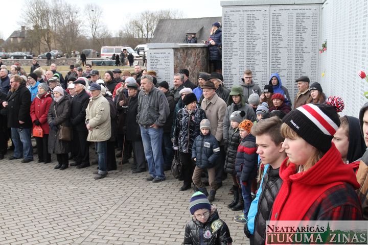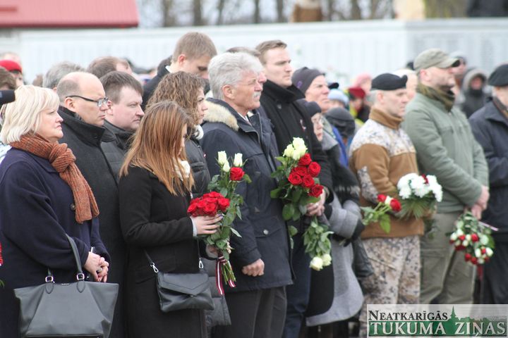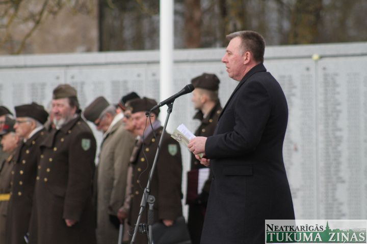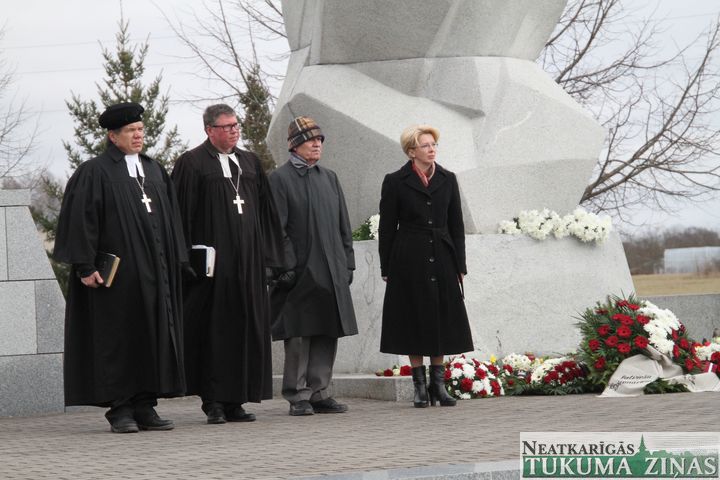 Svētbrīdi noturēja mācītāji Jānis Saulīte un Guntis Kalme. Uzrunu teica arī Latvijas valsts Saeimas priekšsēdētāja Ināra Mūrniece, Tukuma novada domes priekšsēdētājs Ēriks Lukmans, Daugavas Vanagu Centrālās valdes priekšsēdis Andrejs Modris Mežmalis un citi.