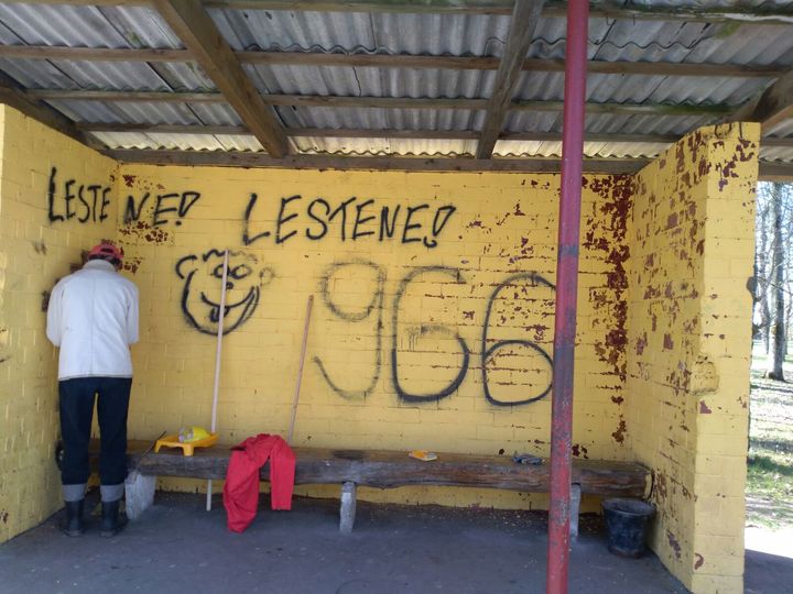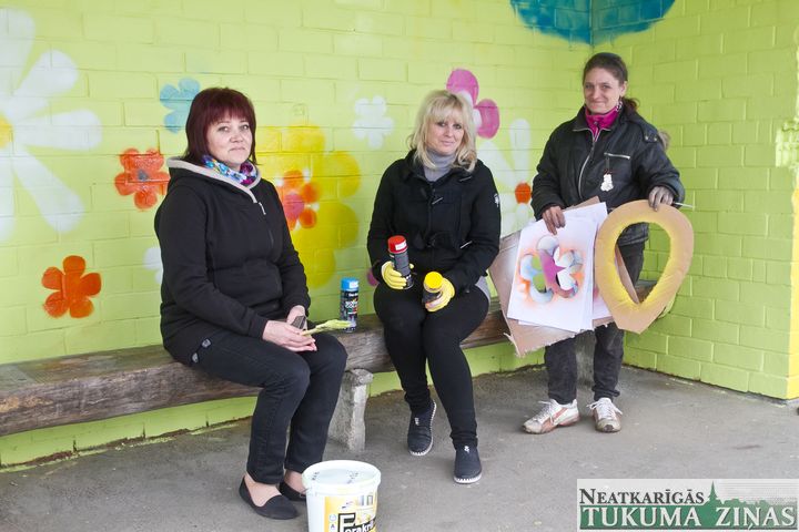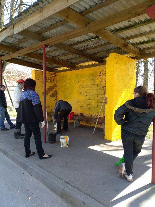 Lestenes tautas nama darbinieces – vadītāja Iveta Papendika, mākslinieciskā daļas darbinieces – Airita Linkeviča un Andra Šmēle, sētniece Ramona Neretina un viņu palīgi trīs dienu laikā talkoja autobusa pieturā Lestenes centrā, nokrāsojot to skaisti saulainās krāsās.