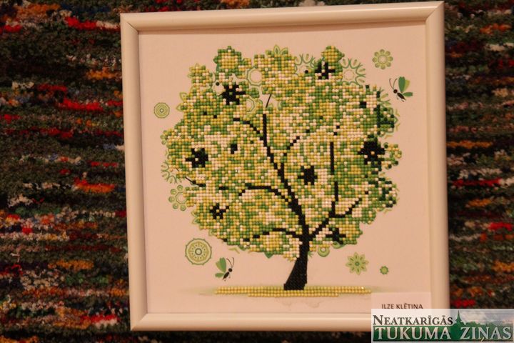 Jautājām mākslas studijas vadītājai T. Šleinerei, cik ilgā laikā tapusi izstāde? Viņa skaidroja, ka visi darbi tapuši gada laikā, un ik gadu rudens mēnešos tiekot gatavotas izstādes kā atskats par padarītajiem darbiem. Bet viena austā sega piesaistīja īpašu uzmanību, jo pie tās skaidri bija lasāms – 1850. gads. T. Šleinere pastāstīja, ka tā ir atceļojusi no Krievijas un, neskatoties uz to, ka nav stāvējusi pūra lādē, bet ikdienā lietota, tā ir ļoti labā stāvoklī.