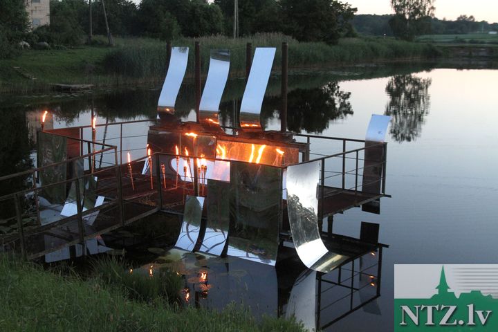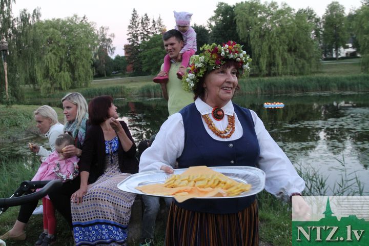 22. jūnijā arī pie Slampes kultūras pils līgoja. Līgotājus ar koncertu iesildīja slavenais akordeona virtuozs Māris Balaško, kurš savu instrumentu spēja pārvērst, gan ērģelēs, gan simfoniskajā orķestrī. Vēlāk visus aplīgoja folkloras grupa “Pūrs”, bet vainadziņu nēsātāji piedalījās konkursā par krāšņāko svētku galvas rotu. Saulrietā ar blīkšķi tika iedegta pundele uz dīķa salas, lēnām sāka kūpēt lielais ugunskurs, kurš, sildot līgotājus, dega līdz pašam rītam, bet dīķa ūdens spogulī spoguļojās spoguļu un uguns instalācija no mākslinieka Jāņa Jansona.