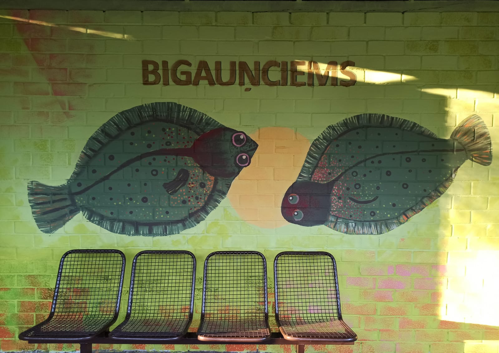 Katram ciemam sava…zivs! Ne šāda, tāda, bet uzgleznota zivs, kas autobusa pasažierus un garāmbraucējus kopš pagājušās nedēļas nogales priecē Bigauņciema pieturā. Jaunās, košās krāsās ietērptā pietura uzmirdzējusi, pateicoties pagasta iedzīvotāju iniciatīvai, kas ideju savukārt nolūkojuši pie tuvākajiem kaimiņiem – engurniekiem.