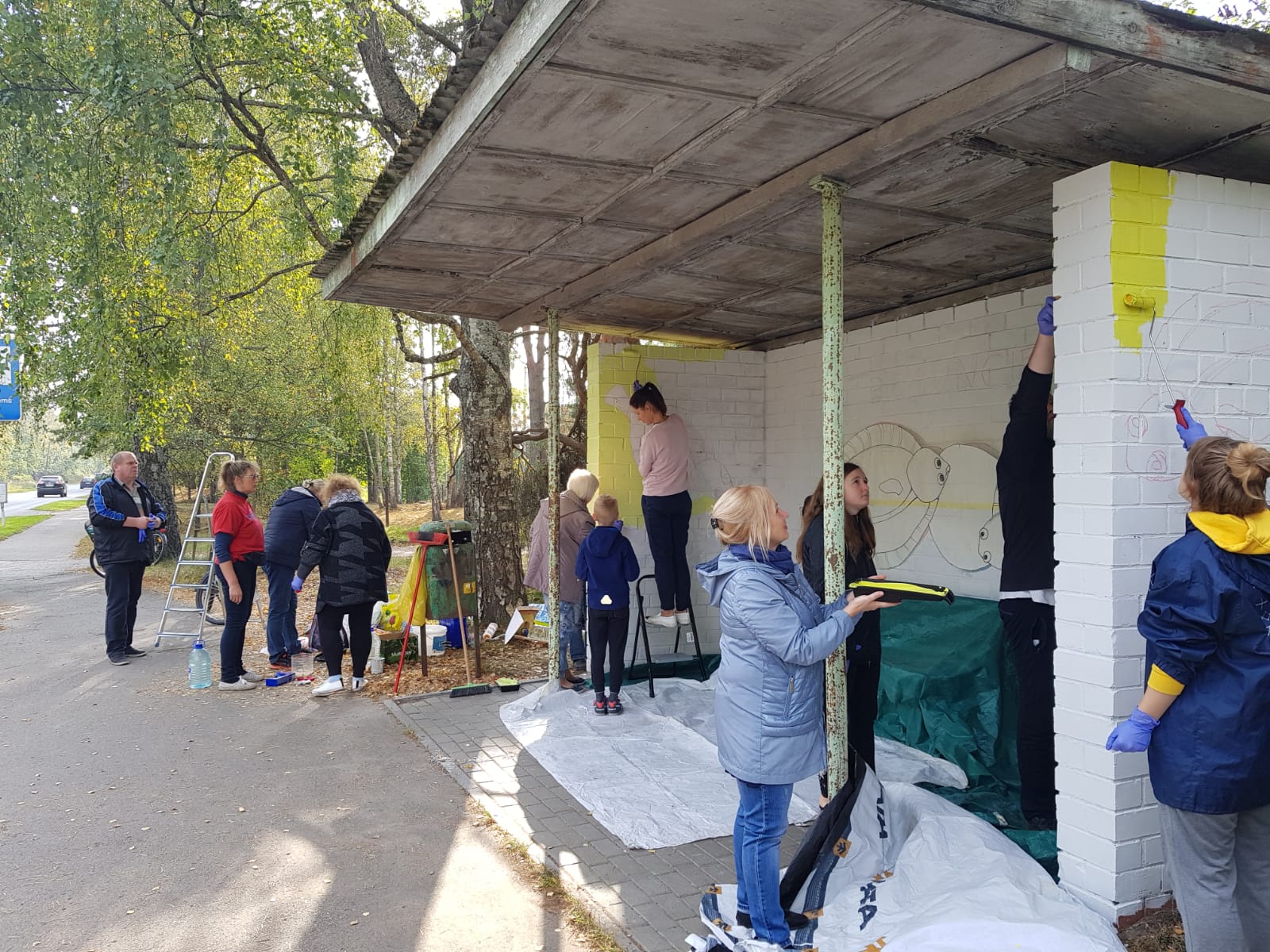Bigauņciemā iedzīvotāji apgleznojuši autobusa pieturu