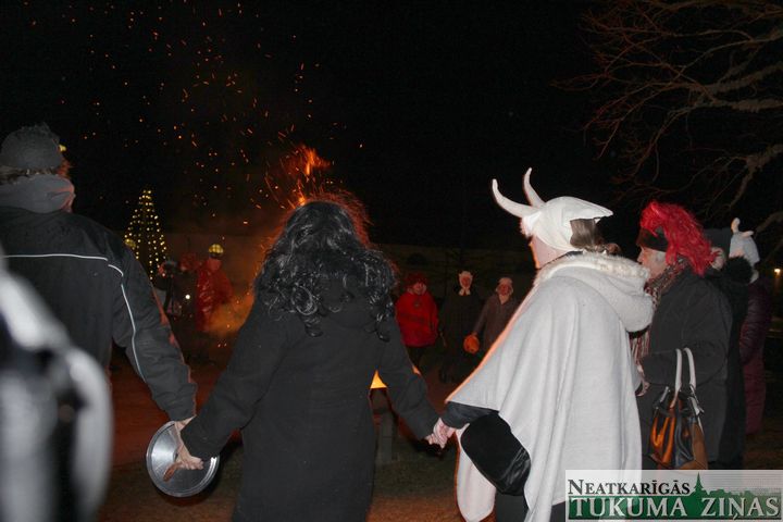 Var jau būt, ka līņāšana baidīja māju iedzīvotājus, bet maz bija to, kas bluķa vilcējiem pievienojās. Budēlīši bluķi izvilka arī caur SIA «Strabag» pagalmu, lai nākamajā gadā ceļu būvētājiem netrūktu darba un mēs varētu braukt pa labiem ceļiem. Tālāk masku gājiens devās uz Šlokenbekas muižu, izvilka bluķi caur muižas pagalmu, tādējādi savācot visas aizvadītā gada neveiksmes. Pie ugunskura pasākuma dalībnieki uz papīra lapiņām uzrakstīja to slikto, no kura katrs nākamajā gadā vēlas atbrīvoties, sasprauda zīmītes bluķī un iecēla to ugunskurā, lai visas nelaimes sadeg un nākamajā gadā mūs nepiemeklē un, protams, lai zūd tumsa un ātrāk atgriežas saule.