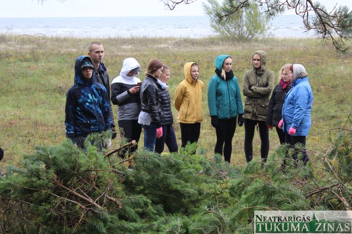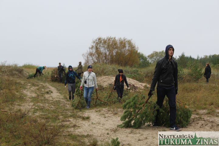 Zinot, ka 28. septembrī Engures pelēkajā kāpā tiek rīkota talka, devāmies lūkot, kā notiek šī pelēkās kāpas atbrīvošana. Diena bija miglaina un auksta, bet tas nebija atturējis strādāt gribētājus. Kāpā sastapām 25 talkotājus gan no Engures vidusskolas (10. klases), gan pašvaldības, gan Dabas pārvaldes un arī vienu pārstāvi no vietējiem iedzīvotājiem.