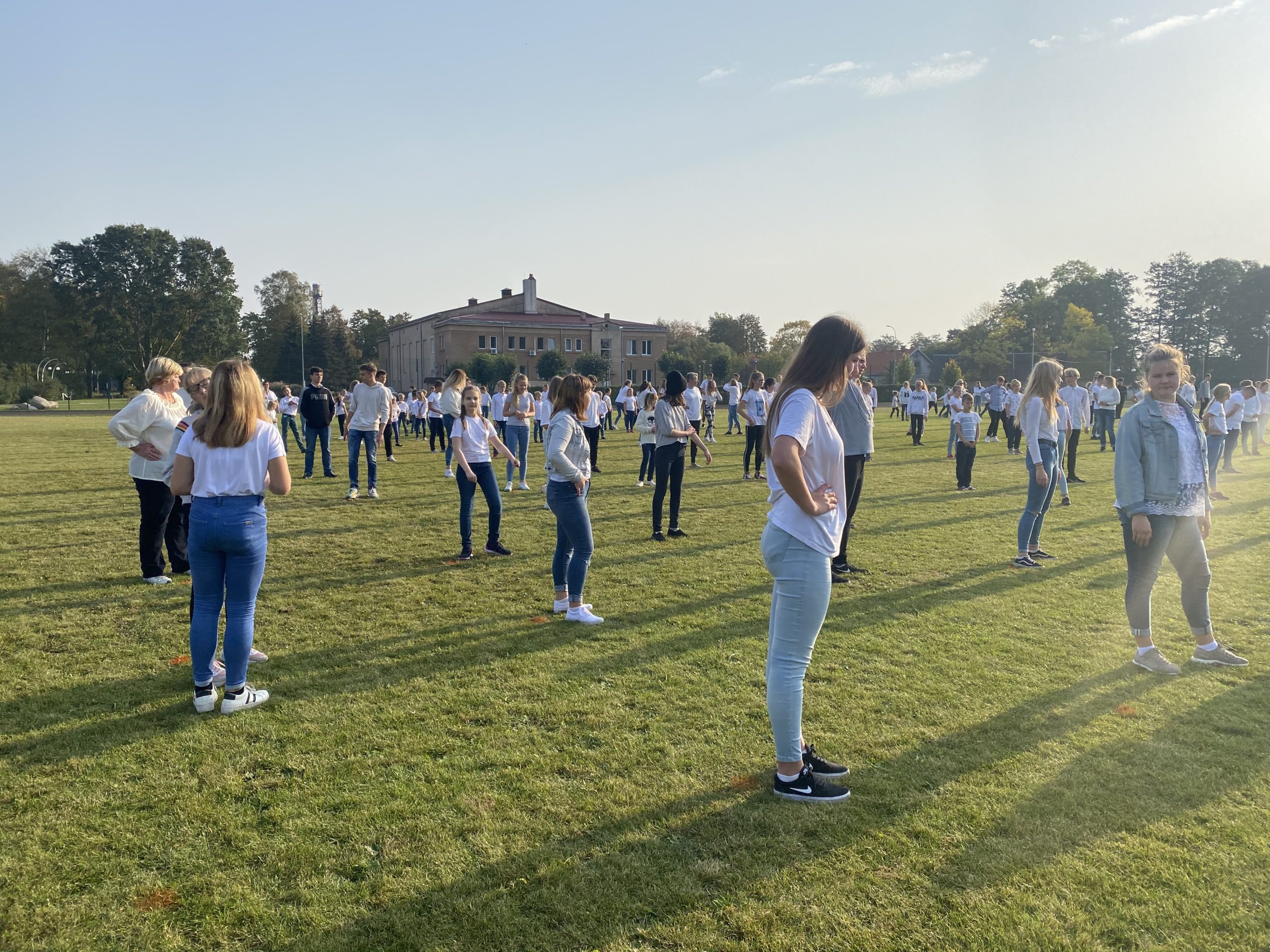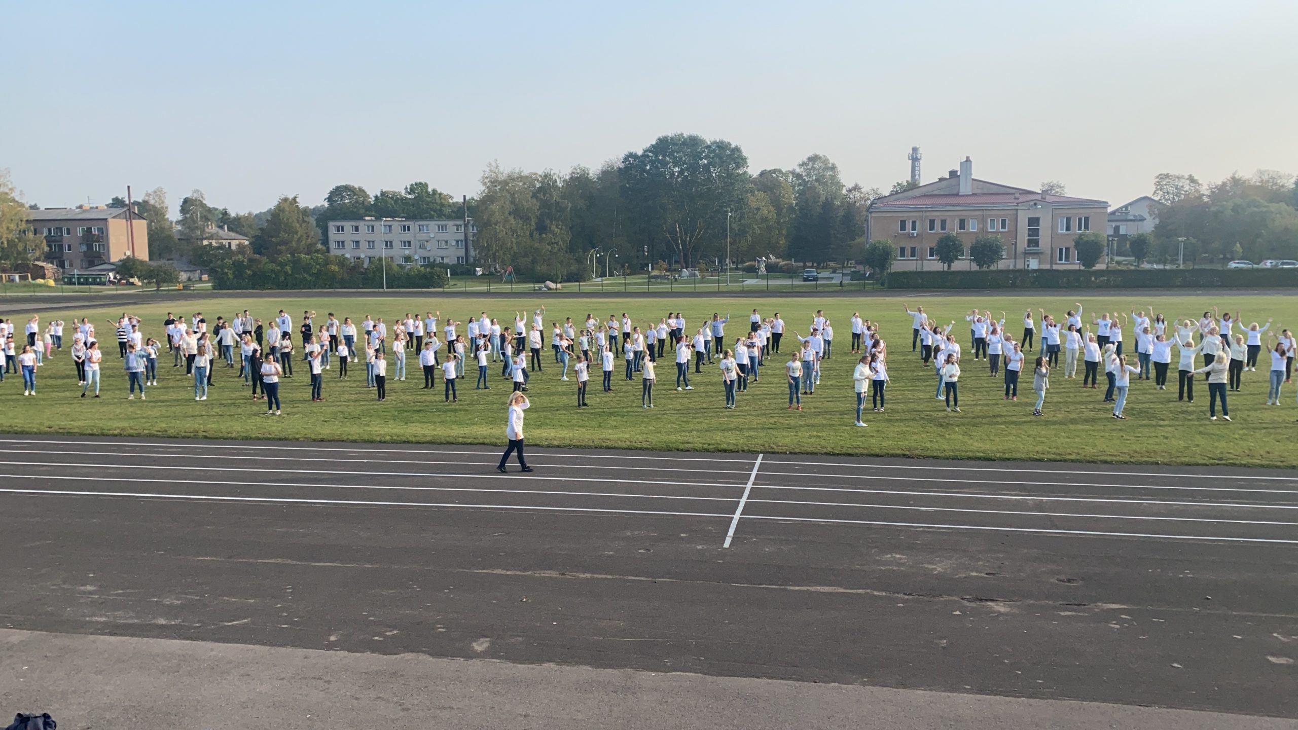 Engures stadionā par godu skolotājām izdejo “Jerusalema” izaicinājumu.
