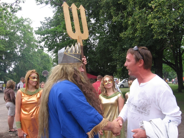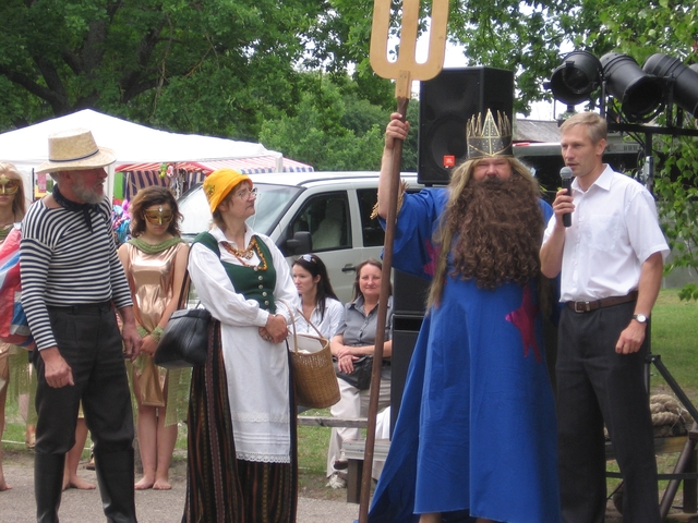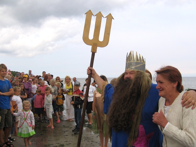 Lapmežciemā nav zudusi labā tradīcija sagaidīt Neptūnu jūras krastā. Gan lieli, gan mazi vēlējās ar vareno jūras valdnieku nofotografēties. Tad Neptūns ar savu svītu devās uz stadionu, kur viņu gaidīja Mildiņa un Oskars. Šeit tika sveikti svētku dalībnieki un atbalstītāji, uzrunu teica novada domes priekšsēdētājs Gundars Važa. Savukārt Neptūns solīja – kamēr jūrā ies kaut vai viena laiva, jūras un zvejnieku svētki būs.