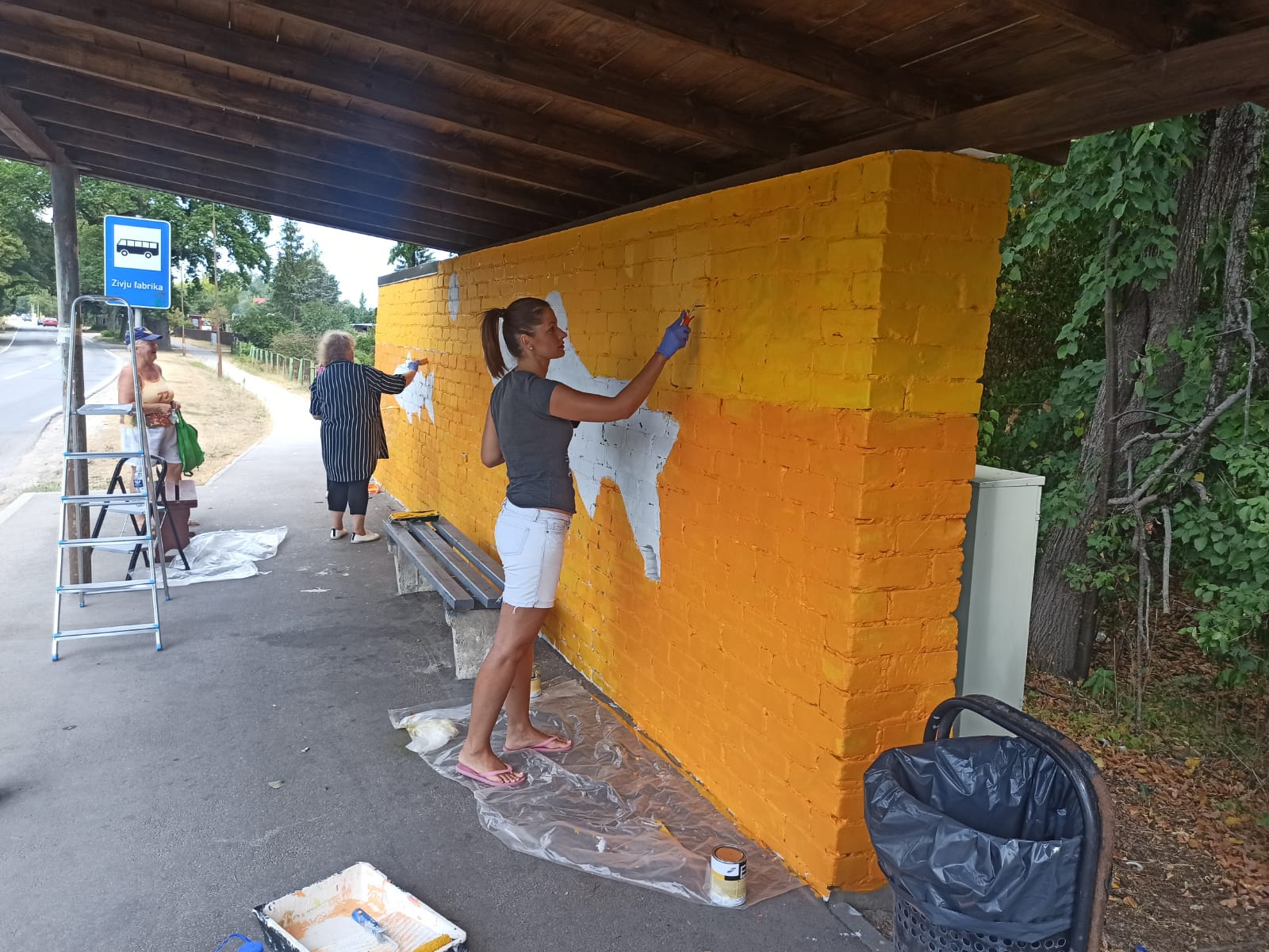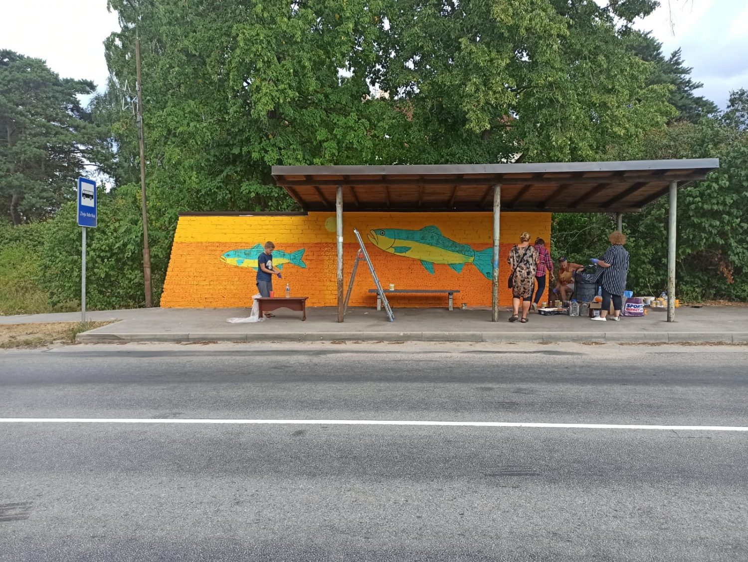 Pagājušā gada oktobrī aktīvi Lapmežciema pagasta ļaudis nolēma, ka arī šajā ciemā autobusa pieturas ir pelnījušas kādu personiskāku piesitienu. Tā pie jauniem, košiem gleznojumiem tika pieturvieta Bigauņciemā. Nu kārta pienākusi Lapmežciemam, un šonedēļ pietura tikusi pie jauna, saulrieta toņos ieturēta krāsojuma un… zivīm. Savukārt augustā savu kārtu gaida arī Ragaciema pietura.