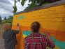 Darbiņos piedalījās: Iveta Meiere, Anita Alberta, Druvvaldis Alberts, Aija Liece, Iveta Ziemele, Arvis Jakobsons, Adrians Jakobsons, Rūdofs Balodis, Velta Pusbarniece. Apgleznošanas darbus atbalstīja Lapmežciema pagasta pārvalde, bet pieturas gruntēšana tika uzticēta Indaram Zebekam.