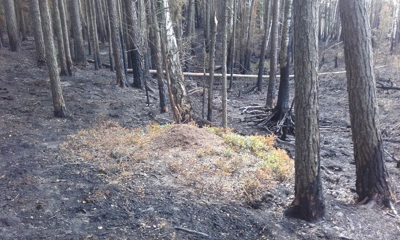 Sazinājāmies ar Dabas pārvaldes vecāko valsts vides inspektoru Kārli Lapiņu. Inspektors informēja, ka svētdien no rīta viss bijis nodzēsts – valsts un meža dienesta ugunsdzēsēji savu darbu bija paveikuši. Šobrīd degusī platība tiekot uzraudzīta, jo dažviet (precīzāk, trīs vietās) novērota kūdras gruzdēšana, kā dzēsēji sakot, tur ”lienot ārā pīpētāji”. Tā esot tāda viegla dūmu strūkla, kas spiežas ārā no zemes un tā bieži vien nav pat kvadrātmetra platībā. Teritorija tikšot uzraudzīta, pieslāpēti dūmi… Un tā turpināšot tikmēr, kamēr būšot pavisam droši par to, ka atkārtoti nekas nevar aizdegties. Uz maiņām teritoriju uzraugot pieci cilvēki.