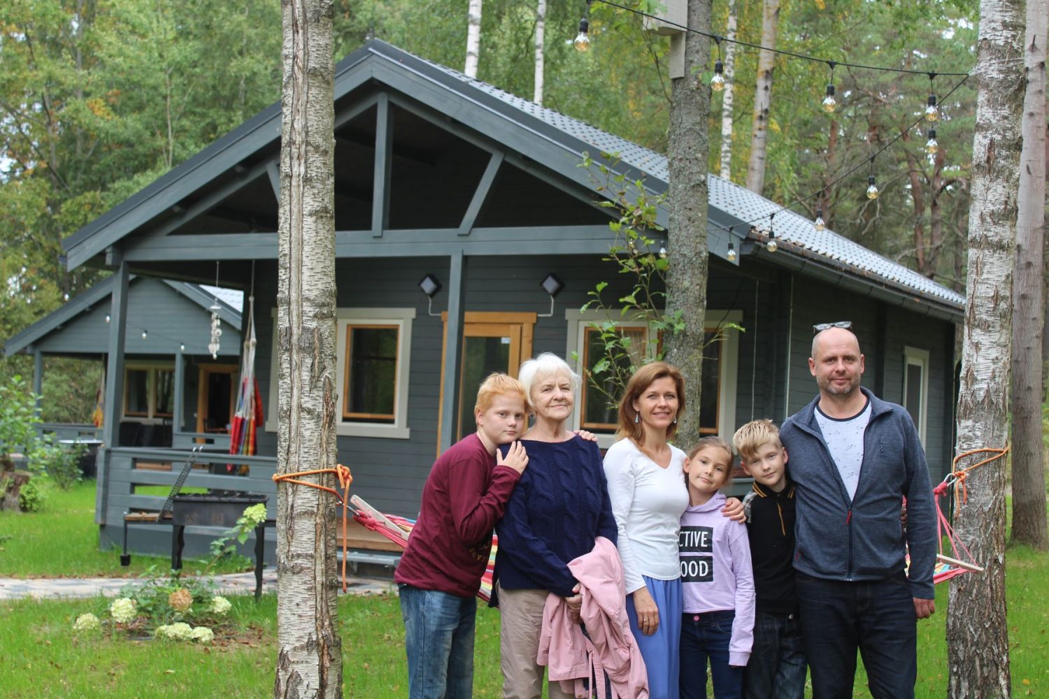 Te saimnieko Ieva un Gints Baloži ar bērniem Grietu, Jēkabu un Rūdolfu. Atbalsta komandā arī Ginta mamma Ligita Balode.