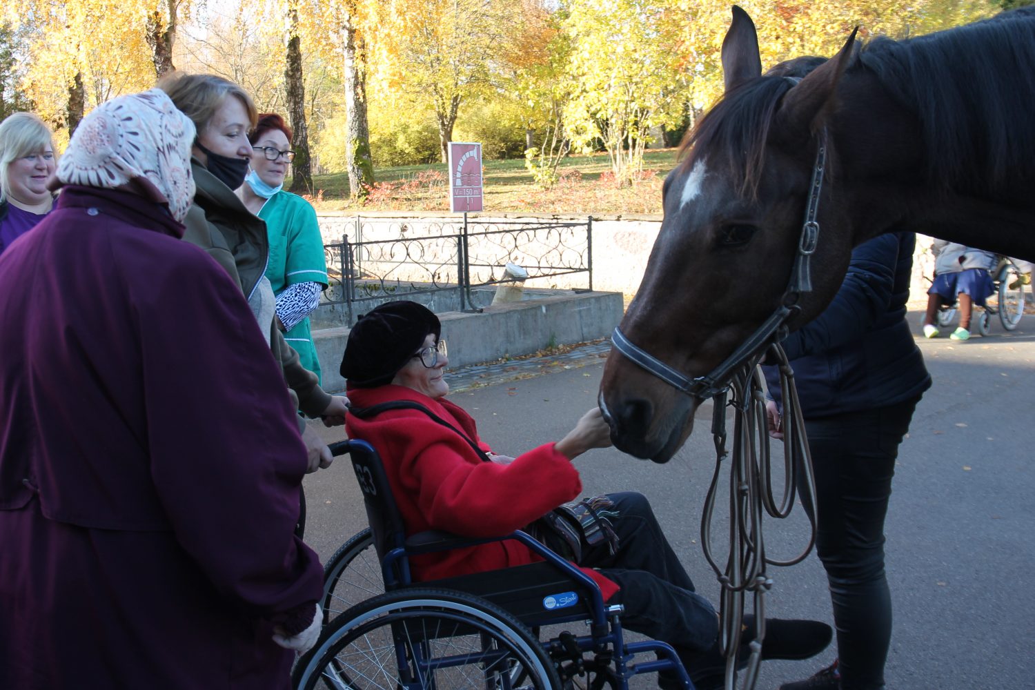 Vēl brīdi pirms… gribējies iespēt izdarīt ko labu! Tā stāsta Ance Freidenfelde, kas otrdienas rītā uz Raudu bija atvedusi jātnieku kluba «Lejnieki» zirgus – cēlo un miermīlīgo Afinu, kā arī pūkaino mazzirdziņu Raibo. Centra iemītnieki viesus uzņēma godam – gan ar glāstiem un apčubināšanu, gan gardumiem – sagrieztiem burkāniem, āboliem, arī maizes šķēlītēm. Kāds, pagalmā stāvēdams, atminējās, ka reiz taču bērnībā arī pašiem saimniecībā bijuši zirgi, cits savukārt ar darbinieku palīdzību centās pārvarēt savu sākotnējo nedrošību, lai varētu pilnvērtīgi ļauties četrkājaino draugu mierinošajiem pieskārieniem. Cik izolētas solās būt dažas nākamās nedēļas (šobrīd gan atšķirībā no iepriekšējās reizes, absolūtais vairākums SAC «Rauda» iemītnieku tomēr jau ir vakcinēti!), vēl grūti paredzēt. Taču šādi kopā būšanas mirkļi jebkurā gadījumā ir zelta vērtē. Un arī zirdziņiem, saka A. Freidenfelde, šāda viesošanās bijusi patīkama. Tas – iespējams, un – uz atgriešanos!
