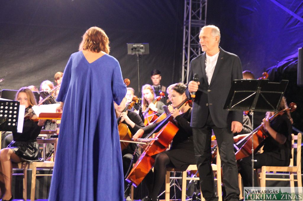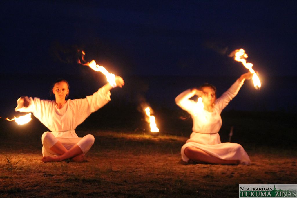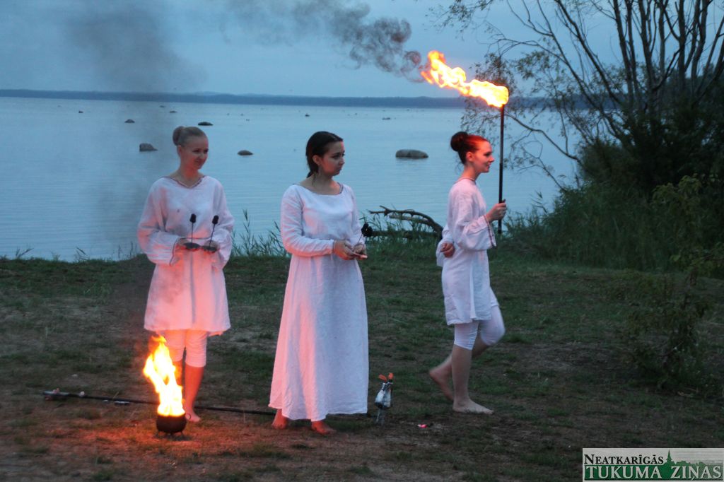 Bet pasākums, kas Latvijas mērogā, sestdien norisinājās Engurē. Tur, pie Dienvidu mola, bija uzslieta skatuve, kur interesentiem, piesēdušiem ugunskura pakājē, bija iespēja klausīties zināmus vai mazāk pazīstamus skaņdarbus skolēnu simfoniskā orķestra izpildījumā. Orķestrī bija apvienojušies Baldones un Vecumnieku jaunieši, ko vada un diriģē Solvita Loka. Skolēnu orķestra uzstāšanās bija kā ievads jaundarbam, ko īpaši šim pasākumam un vienlaikus – Baltijas valstu simtgadei radījis komponists Jēkabs Nīmanis un dzejniece Inga Gaile. Tas bija skaņdarba «Līdzi man nāc» pirmatskaņojums, kas kā veltījums jūrai vienlaikus norisinājās Vārvē, Rīgā, Ainažos, Saulkrastos un citviet piekrastē. Skaņdarba vokālā partija Engures koncertā, brīdī, kad pie jūras jau bija pavisam satumsis, tika uzticēta grupas «Menuets» ilggadējam solistam Adrianam Kukuvasam. Bet. lai radītu vēl gaišāku noskaņu, īsi pēc koncerta uzstājās meiteņu trio, kas burtiskā nozīmē spēlējās ar uguni («Athare fire») – kontrolētām liesmām lika dejot tautas melodiju pavadījumā.