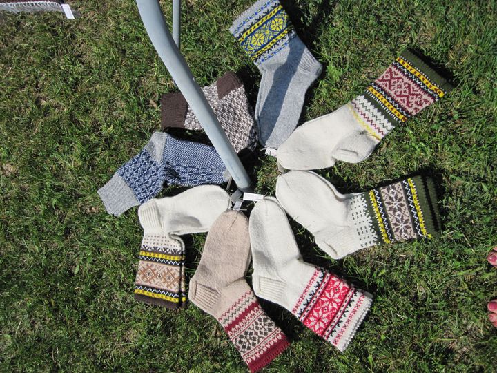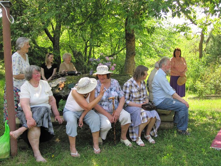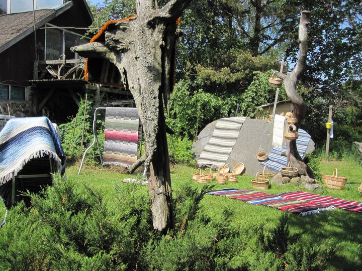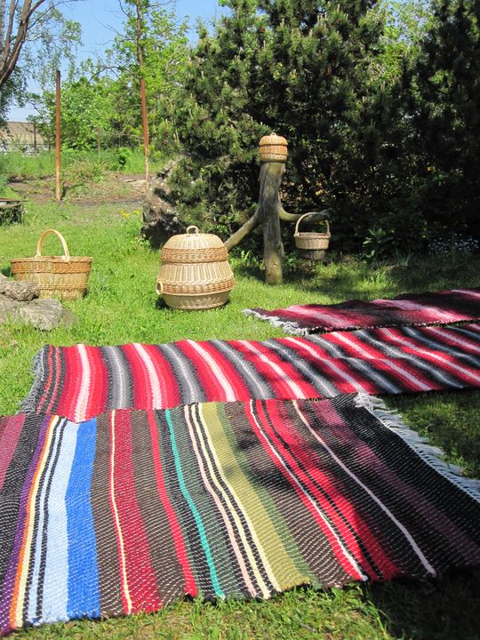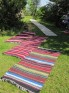 Engures novada Ragaciema «Skarās» pagājušās nedēļas nogalē bija sarīkota jauka brīvdabas izstāde. Par šo pasākumu tā iniciatore Irēna Skaraine jau iepriekš bija paziņojusi cieminiekiem. Aplūkot audējas Maijas Veinbergas darbus un Dailas Šķiestas pinumus bija ieradies kupls interesentu pulciņš. Izstāde bija iekārtota brīvā dabā – krāsainie kājceliņi izklāti zaļā zālītē, groziņi rotāja kokus un krūmus. Pie limonādes glāzes un Irēnas kundzes ceptā svītraina keksa (arī Maijas austie kājceliņi bija svītraini) notika jauka patērzēšana mākslinieka Oļega Skaraiņa pagalmā. Maijas kundze stāstīja, kā apguvusi audējas prasmes, kā sāka darboties tautas mākslas studija «Engure».