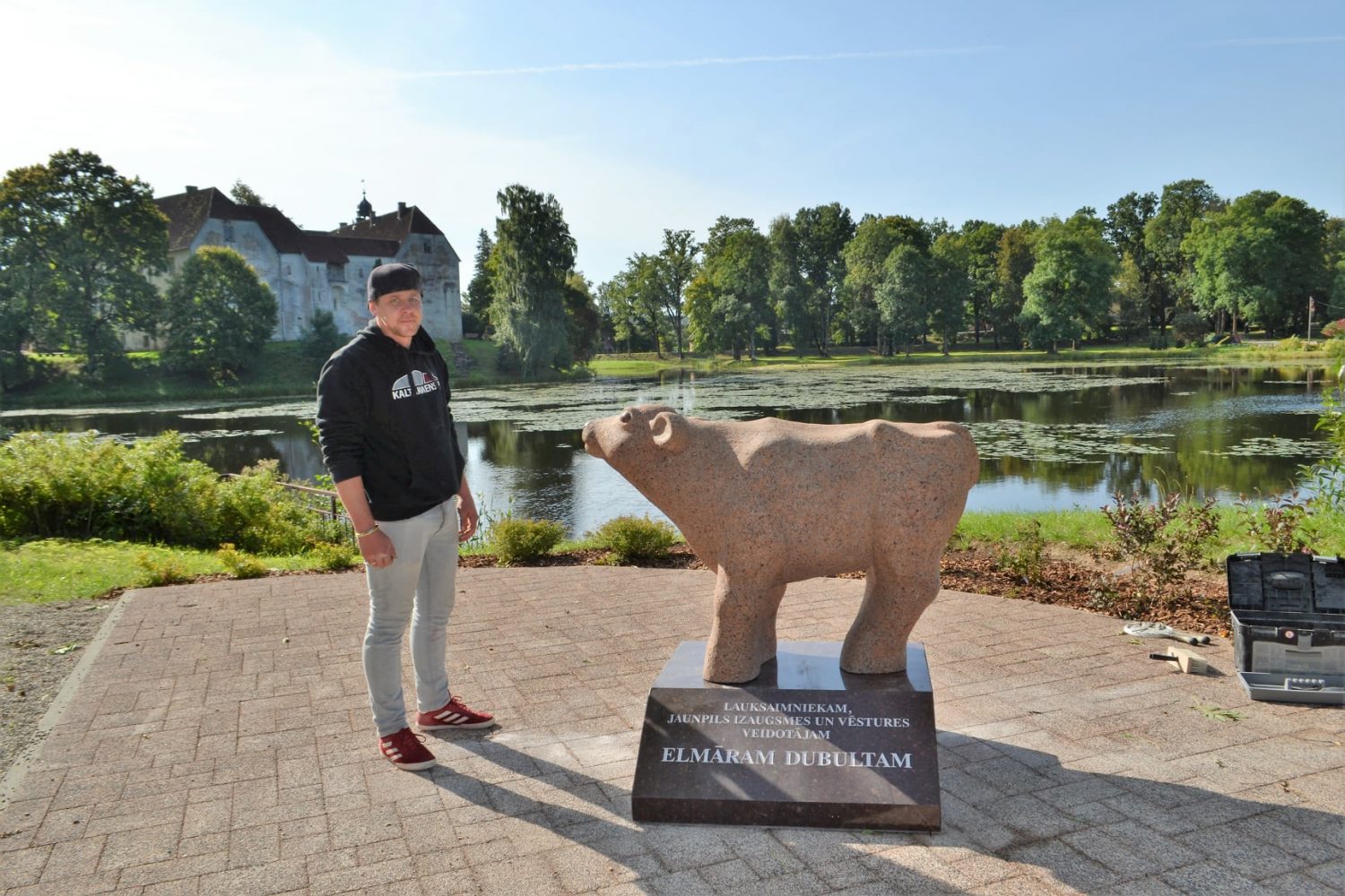 Pensionāru biedrības «Jaunpils» vadītāja Austra Sipiniece pastāstīja, ka jau 2016. gada 30. marta kopsapulcē pensionāru biedrība «Jaunpils» ierosinājusi Jaunpils novada domei rast risinājumu izveidot E. Dubultam piemiņas vietu. Nākamajā gadā ar visu domes deputātu atbalstu pieņemts lēmums šādu piemiņas vietu izveidot. Tomēr Covid-19 pandēmija ieviesusi korekcijas, un esot jāpiemin, ka šajā laikā notikusi arī novadu reforma. Nu, pārvarot dažādus šķēršļus, beidzot tas ticis izdarīts Jaunpils domes programmas «Darām paši» (vadītāja Vija Zīverte), pensionāru biedrības «Jaunpils» projekta «Elmāra Dubulta piemiņai» (vadītājs Kārlis Ķergalvis), ietvaros. Tā kā pašvaldības finansējums projekta realizēšanai nepietika, tad pārējās izmaksas sedza ziedotāji. Piemiņas vietas un tās apkārtnes labiekārtošanu finansiāli atbalstīja Jaunpils pašvaldība, – tā pārvaldes vadītāja Baiba Rasa. Akmens skulptūras autors ir Gatis Celitāns, bet piemiņas zīmi veidoja Guntis Pandars.