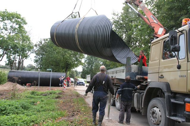 Kad no lielceļa nogriežas, iela ved Rūšu strautam pāri. Strauts ar ūdeni piepilda dīķus līdz lielceļam un arī aiz tā līdz un ap viduslaiku pili. Caurtece zem Mesteru ielas bija savu laiku nokalpojusi. Tagad tā izrakta. Vietā guldīs jaunu 2,4 metrus diametrā un 17 metrus garu. Dambja pusē, no kurienes upe tek, ierīkos meniķi. Tad turpmāk ūdenstilpnes līmeni varēs regulēt. Mesteru ielas dambja daļa ar gadiem ir aizaugusi. Arī to paredzēts iztīrīt. Mesteru ielas rekonstrukcija izmaksā Ls 90 000. Un tikai desmito daļu sedz pagasts. Pārējā ir Eiropas nauda.