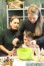 Pēc oficiālākās runu teikšanas un lentas griešanas visi tika aicināti ieturēties ar pīrādziņiem un siltu tēju… Un tad – pie praktiskajām lietām. Visiem, kas vēlējas, bija iespēja iemācīties, kā pareizāk siet pirts slotiņas, lai pašam pērējam būtu vieglāk un lai tās neizjuktu pie pirmajiem pērieniem. Kad slotiņas bija gatavas, tās ielika mērcēties, bet tikmēr visi devās uz pirts telpām, kur Lāsma Zāgmene un A. Vilde Batņa iepazīstināja ar aromterapijas pasauli – ar to, kā pareizāk aromātiskās eļļas lietot, ejot pirtiņā un arī ikdienā. Katrs varēja izvēlēties sev tīkamāko aromātu un izveidot savu īpašo berziņu – skrubīti. Un tad tie, kas vēlējās varēja par ziedojumiem doties kārtīgi izkarsēties un nopērties. Silvas mazā meitiņa Elziņa bija visnepacietīgākā un nevarēja sagaidīt, kad varēs iemēģināt jauno pirtiņu…