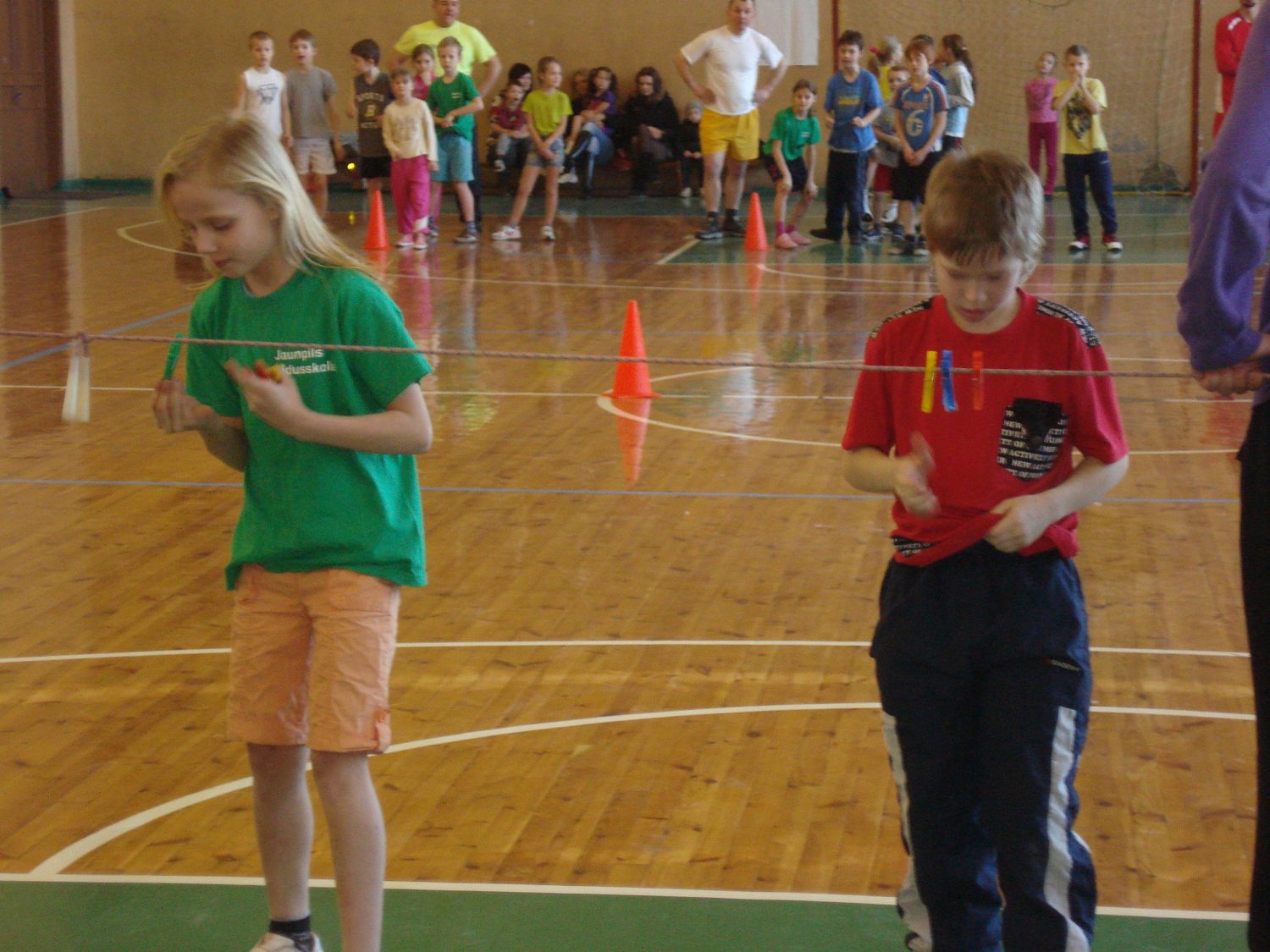 Izkustināt bija iespēja teju visas muskuļu grupas, jo bija ieplānoti gan tādi vingrinājumi, kur svarīgāka ir veiklība, piemēram, uz ātrumu jānolasa knaģīši no veļas striķa, gan tādi, kur svarīgs spēks un stratēģiskā domāšana, proti, virves vilkšana. Bet komandu gars tika pārbaudīts īstā skolas laika spēlē – tautas bumbā. Veiklības stafetē bija iekļauts posms – tuneļrāpošana, un te nu, atzina D. Adiņa, disciplinētākie izrādījušies bērni. Tunelī mazie sportotāji, atšķirībā no saviem vecākiem, devušies prātīgi un pēc kārtas, savukārt vecāki – sportiskā azarta pārņemti – centušies ejā iespraukties pa vairākiem uzreiz. Rezultātā – "zaudētājos" palika tunelis, kas savu cēlo "tuneļa" nosaukumu vairs nevarēs nest…