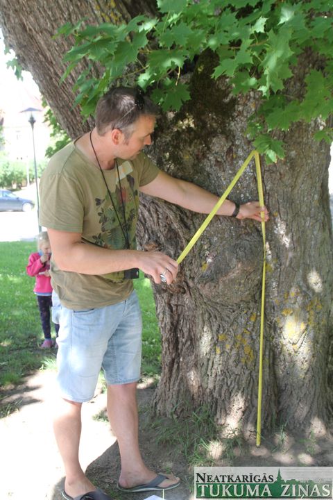 Jaunie dabas pētnieki, pieredzējušāku ekspertu vadībā, varēja arī paši iemēģināt roku koku apmērīšanā un ne tikai koku. Pārmērīta tika gan dižā kļava pie Jaunpils baznīcas, gan liepa tā sauktajā Aizkapličā. Un secināts, ka abas kopš 1978. gada krietni paaugušās – kļava sev pieplusojusi vairāk nekā 60 centimetrus, bet liepa ir kļuvusi pat par metru platāka. Liepa tāpēc pat nu saņēma pati savu dižkoka nozīmīti, bet kļava ieguva atbilstošu numuru, lai dižkoku datu bāzē būtu vienkāršāk identificējama. Bet, ja koki auguši augumā, tajā pašā laikā Jaunpils baznīca, ja salīdzina ar rakstos minēto, gan zaudējusi 20 metrus no sava augstuma.Tā vismaz secināja ekspedīcijas dalībnieki, iemēģinot paštaisīto augstuma mērītāji (izmantojot parasto trijstūra malas aprēķināšanas formulu)…