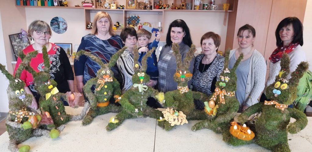 Tā jau kļuvusi par tradīciju, ka tiek veidoti Zaķi. Iepriekšējos gados, kopā ar Gunu Misāni, ir izmēģināts darināt zaķus, kur  par pamatu izmantojām  balonu, papīru,  koku, auklas, stieples un dažādus rotāšanas materiālus.  Rūpīgā darbā, ar pacietību un neatlaidību,  šogad tapa katrai savs sūnu zaķis: romantiskais, laipnais,  priecīgais, dusmīgais, centīgais, optimistiskais un  bailīgais … visi  skaisti, darināti ar prieku.