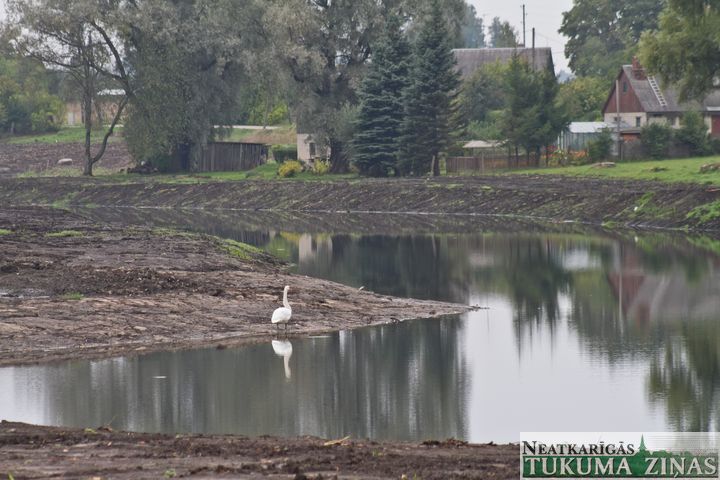 – Ezera slūžas ir pabeigtas, nogāzes nostiprinātas ar ģeotekstilu, iestādītas parka rozes. Tas nodrošinās, ka neviens tur negribēs līst iekšā un arī kopšanu atvieglos, jo augu saknes nogāzi pasargās pret nobrukšanu. Pašreiz vēl jāpielabo Jaunkalnu tilts pie veikala. Tuvākajās divās nedēļās tur tiks veikti betonēšanas darbi, un tad arī sāksim ezeru piepildīt ar ūdeni. Domāju, ka oktobra beigās jau redzēsim Jaunpils ezera spoguli visā krāšņumā.