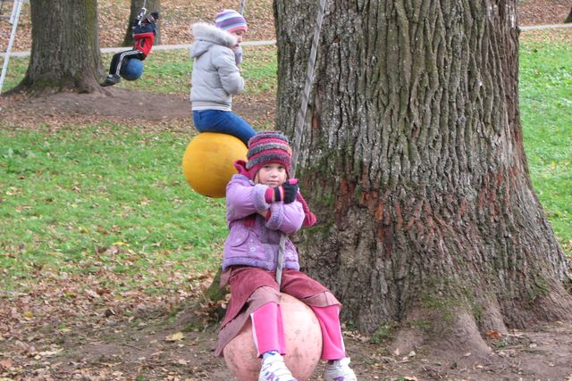 Jau vēstījām, ka pagājušajā svētdienā bija paredzēta šūpoļu kāršanas talka Jaunpils centra ozolu birzī. Tur biedrība «7 balles», kas īstenoja projektu, ko finansiāli atbalstīja pašvaldība konkursa «Darām paši» ietvaros, bija iecerējusi iekārt 11 krāsainas šūpoles – bumbas.