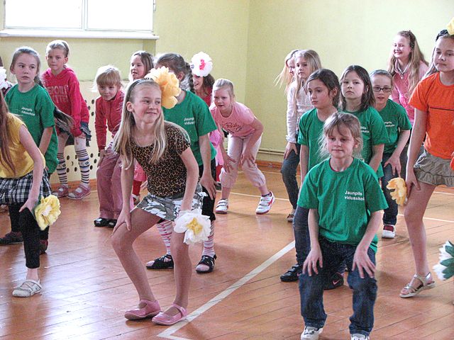 Nepārspēts līderis, izvēloties muzikālo pavadījumu, jauniešu vidū bija Lauris Reiniks, kura pēdējā laika ritmiskāko hītu «Es skrienu» izvēlējās gan pavisam mazie – 4. klases bērni, gan 12. klases meitenes. (Dzirdēja gan runājam, ka mazie īstos soļus bija iegaumējuši un izpildīja precīzāk.) Netika brāķētas arī citas latviešu mūzikas pērles – gan «Labvēlīgā tipa» dziesma par cūku, kas no alumīnija, un šīs dziesmas pavadījumā 1. klases kustināja kājiņas pret griestiem. Bija arī «Prāta vētras» «Lidmašīna», pateicoties kuras iestudējumam, 9. klase no žūrijas esot saņēmusi visvairāk punktu. Taču vietas, kā pastāstīja skolotāja Irēna Martuzānes, dalītas netika, un visi bērni saņēma atzinību par to, ka piedalījušies un izkustējušies uz nebēdu.