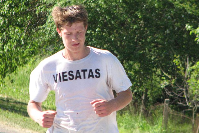 Skrējēju nebija daudz – kopskaitā seši – pieci puiši un viena daiļā dzimuma pārstāve, bet visi – apņēmības pilni noskriet aptuveni septiņu kilometru garo distanci, spītējot vasarīgajai saulei, kas šajā rīta stundā bija pakāpusies gana augstu.