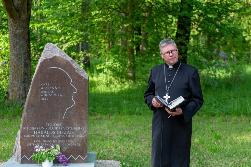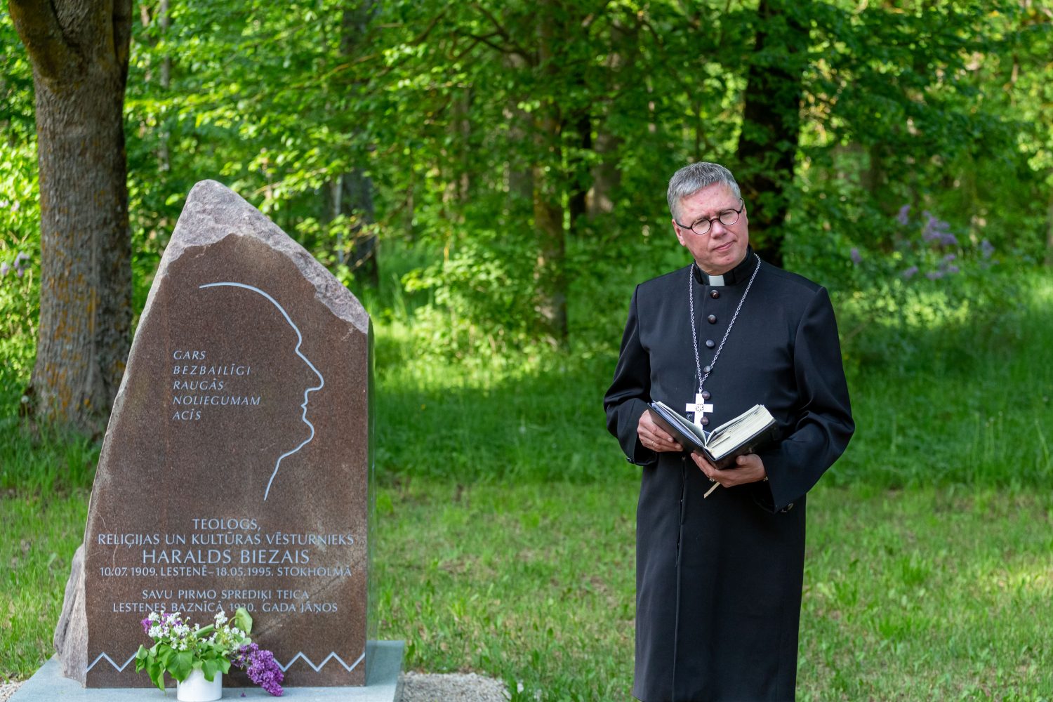– Mans tēvs Roberts Slokenbergs Lestenē bija mācītājs pirms nepilniem simts gadiem, un Haralds Biezais toreiz bija viņa audzēknis iesvētes mācībā, kas toreiz lauku jauniešiem ilga vienu nedēļu. Iespējams, ka arī abu padziļinātās sarunas bija pie vainas, ka vēlāk H. Biezais devās uz Latvijas Universitāti, lai studētu teoloģiju. Tur viņš kļuva par teoloģijas doktoru un mācību spēku, bet, tuvojoties krievu okupācijai, ar ģimeni aizbēga uz Zviedriju. Tur, atkal uzsākot studijas, viņš ieguva jau savu otru doktora grādu Upsalas universitātē.