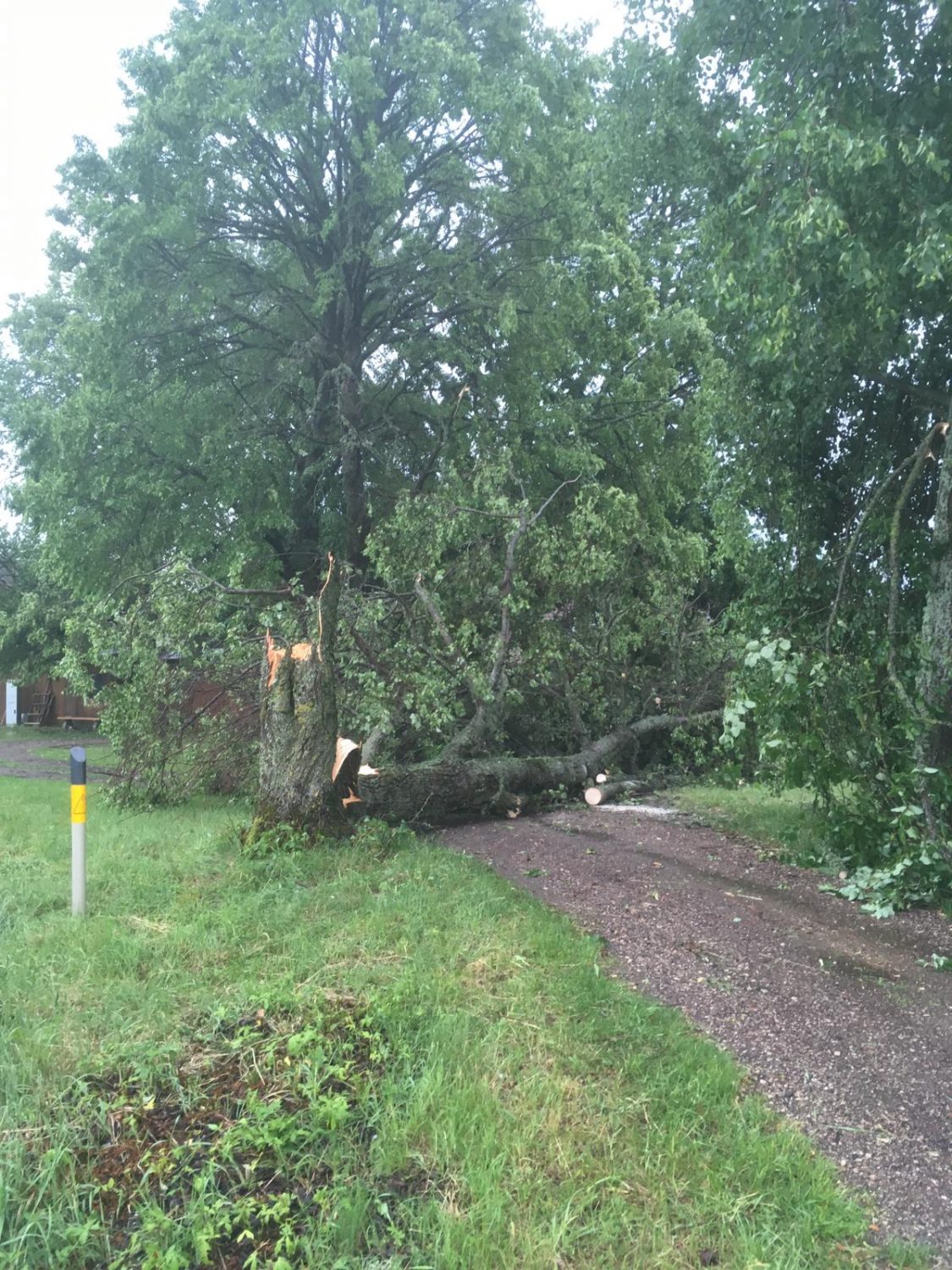 Lietus un vējš, kas šovakar, 11. jūnijā, sastādīja kompāniju spēcīgajam negaisam, Tukumā, kā arī tā apkārtnē lauzis kokus un vietām izraisījis plūdus.