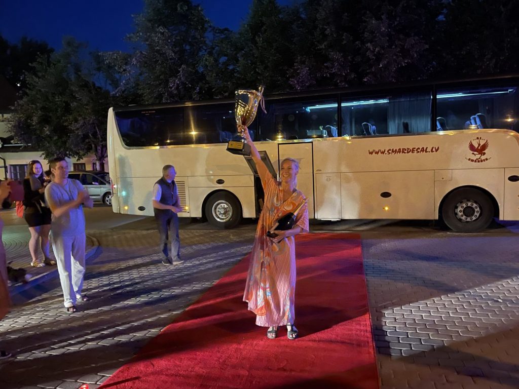 No 20. līdz 28. jūnijam Tukuma deju skolas «DEMO» dalībnieces piedalījās starptautiskajā deju festivālā «MAGIC WORLD» Haskovo, Bulgārijā, un izcīnīja konkursa galveno balvu. Vakar vēlu vakarā vecāki ar ovācijām un sarkano paklāju sagaidīja skolas vadītājas Lienes Bēniņas dejotājus Tukumā. Lieki teikt, ka pārsteigums bija neviltots.