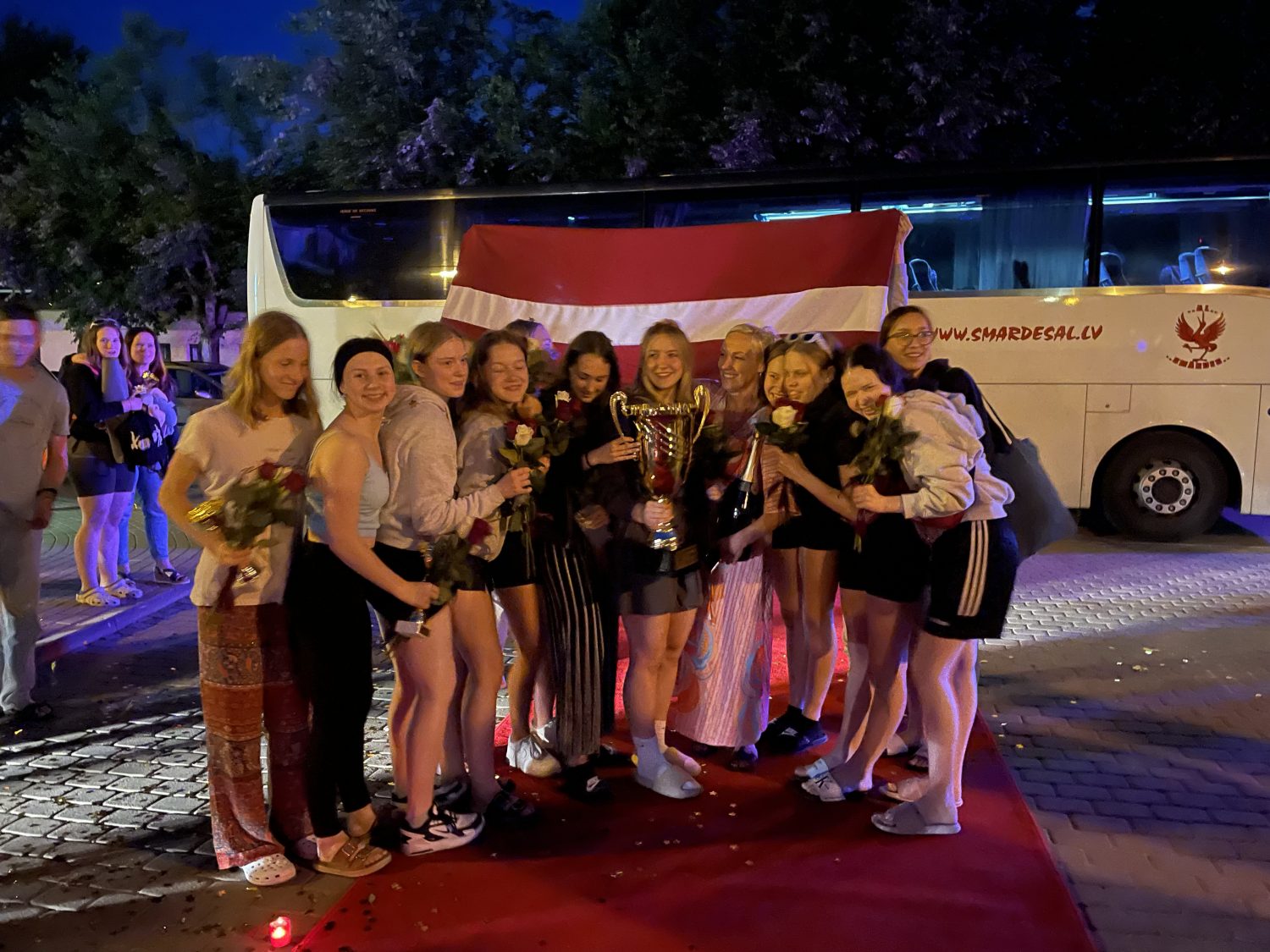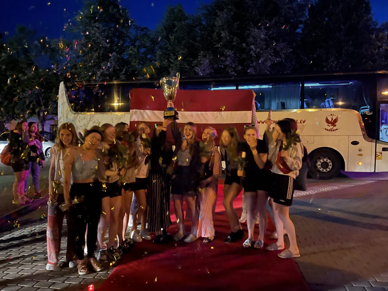 Pēc uzvaras festivālā svinīgi sagaida «Demo» dejotājus/foto un video/