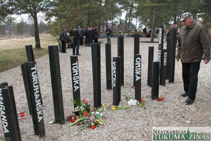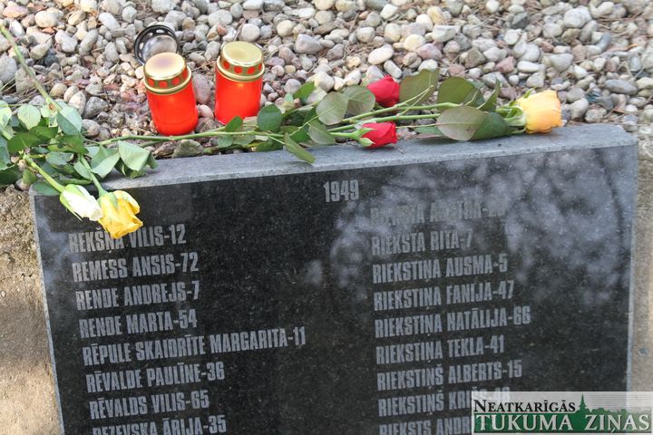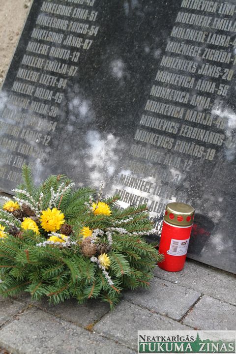 Dienas pirmajā pusē bijām klāt piemiņas pasākumos Degolē, Tumē un Vecmokās, ko organizēja Tumes un Degoles pagastu pārvalde. Pēcpusdienā piemiņas vietā pie Tukums II dzelzceļa stacijas pulcējās vairāk nekā simts cilvēku, lai piedalītos atceres pasākumā. Dzeju runāja Dace Lebeda un Agita Stutiņa no Tukuma kultūras nama. Savā uzrunā Tukuma Represēto biedrības pārstāve Ināra Skrube dalījās atmiņās par Sibīrijā piedzīvoto. Viņa uzsvēra, ka lielākā daļa no tiem represētajiem, kas vēl dzīvi – tika izsūtīti kā bērni. No toreizējā Tukuma rajona 1949. gada 24. martā tikuši izsūtīti ap 1660 cilvēku – vairāk nekā 500 ģimenes.