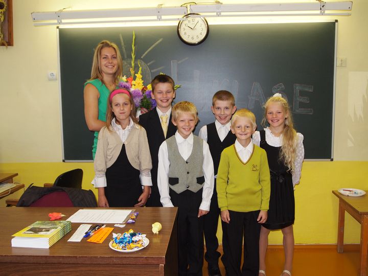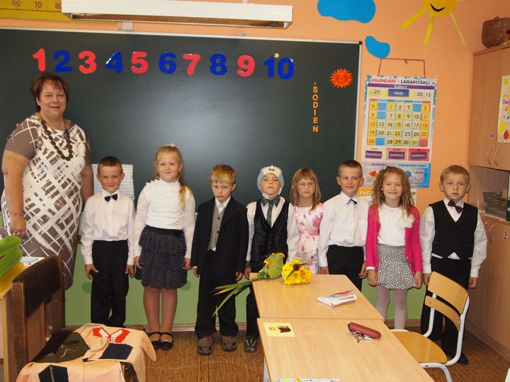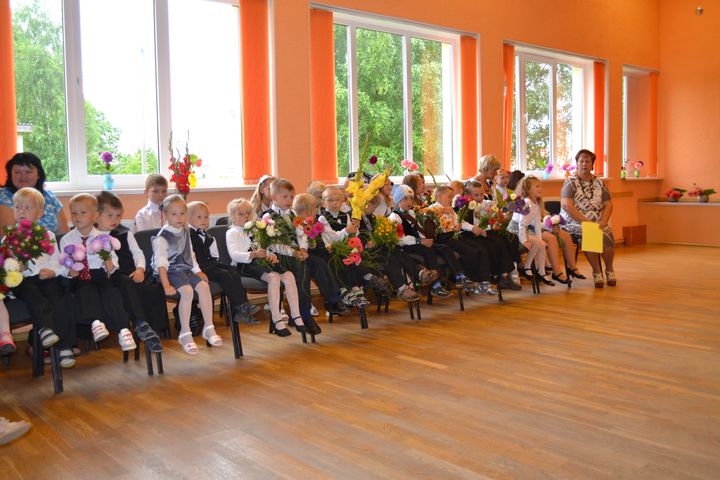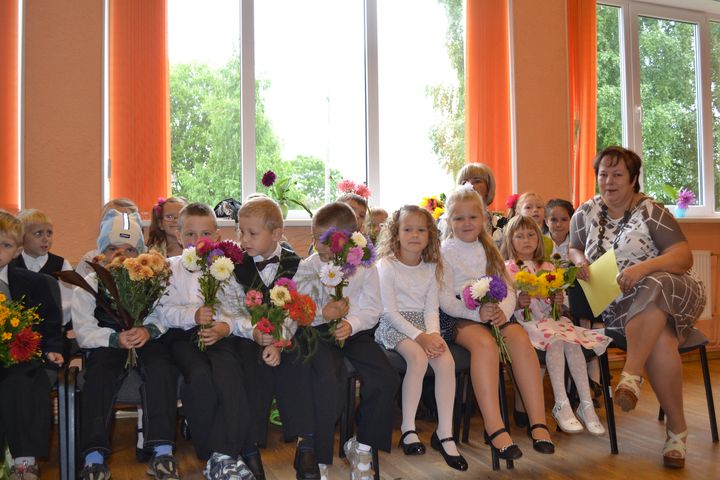 Atkalredzēšanās prieks pēc vasaras brīvlaika lielai daļai bērnu licis pamosties jau agri, agri – tā savā starpā pirms svinīgā pasākuma vecāki stāsta. Šogad mācības 1. klasē uzsāk 9 jaunie skolnieciņi. Skolotāja nedaudz bažījas, kā būs ar tautas deju dejošanu, jo klasē tikai divas meitenes, bet pārējie braši puikas.