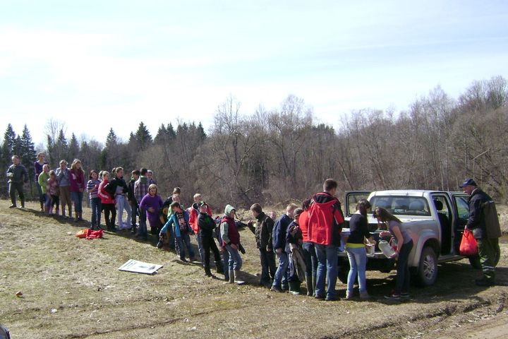 Un tā pirmdienas rītā biedrības biedri, Irlavas skolēni un skolotāji kopā ar Latvijas mežu Zemgales mežsaimniecības speciālistiem devās iekarot dabas un izziņas takas kokus, lai piestiprinātu putnu mājiņas. Visvairāk mājiņu tika meža strazdiem un svīrēm, daudz – arī mušķērājiem, zīlītēm, dzilnīšiem, cielavām. Vispirms ornitologs Ojārs Demiters informēja bērnus par būrīšu nozīmi un to izvietošanas noteikumiem mežā; bija arī jautājumu un atbilžu konkurss, kas atklāja, ko bērni zināja un ko nezināja par putnu dzīvi. Vienlaikus notika diskusijas par mežu, kokiem un augiem, par putnu nozīmi mūsu dzīvē.