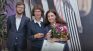 Ivonnai Plaudei balvu pasniedza LŽA valdes priekšsēdētājs Iļja Kozins un laikraksta «Kurzemnieks» redaktore Daiga Biteniece